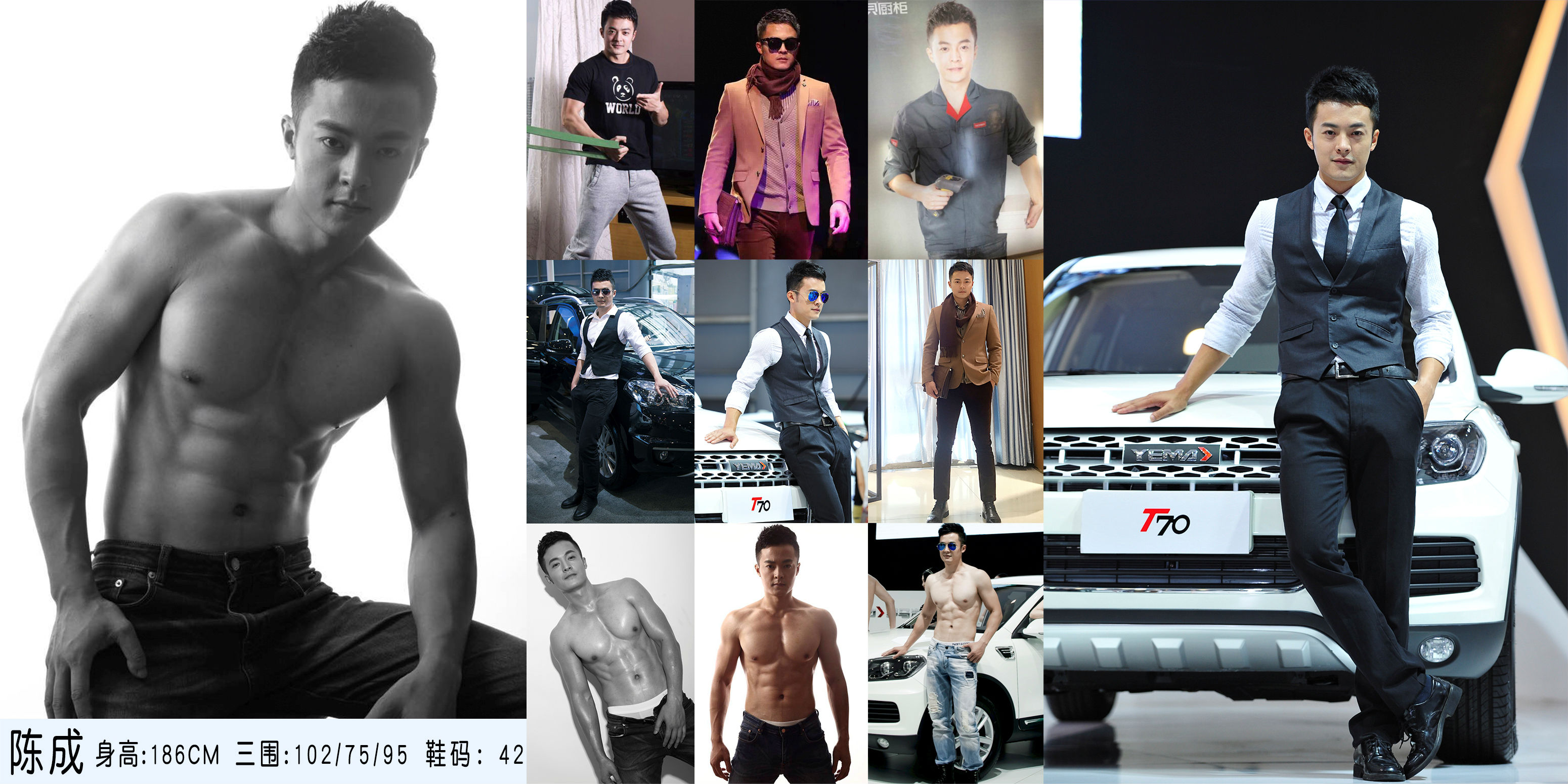 2013年成都國(guó)際車展雷諾車模,廣汽本田第九代雅閣新車發(fā)布會(huì)車模,2013梅賽德斯-奔馳造夢(mèng)之夜車模,2013勁霸男裝秋冬發(fā)布會(huì),2014捷豹XF成都新車發(fā)布會(huì)車模,2014成都國(guó)際車展野馬汽車車模,2015上海大眾凌渡西南區(qū)域上市會(huì)車模,2015成都國(guó)際車展野馬汽車車模,2015秋冬堡尼男裝發(fā)布會(huì)男模,2016仁恒置地時(shí)裝周男模2016春夏利郎男裝發(fā)布會(huì)男模等。